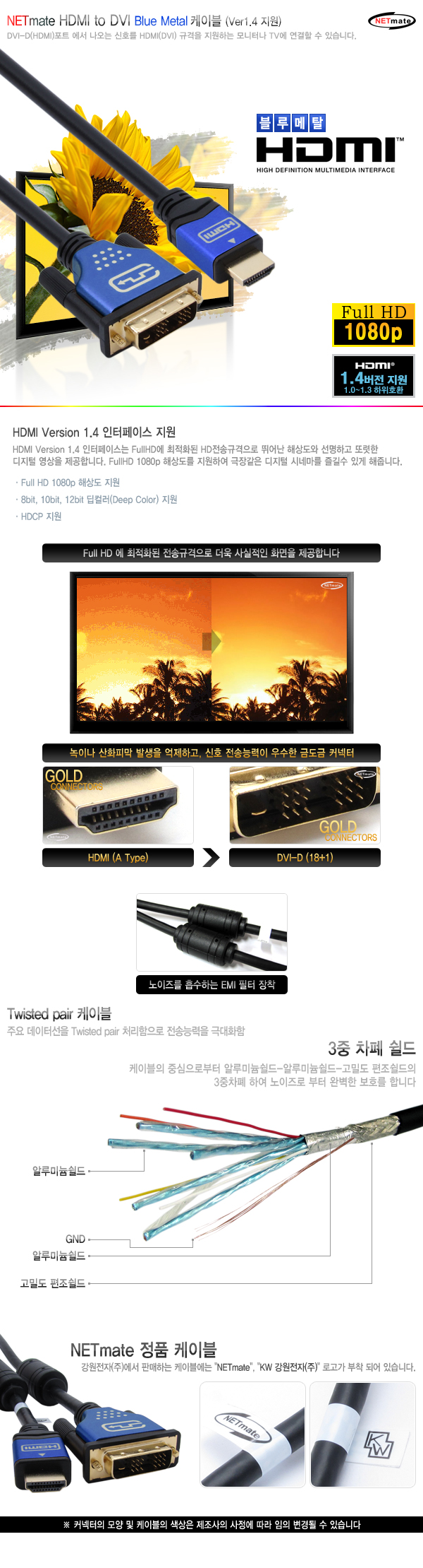 강원전자 넷메이트 HDMI to DVI Blue Metal 케이블 2m NM-HD02BZ NM-HD02BZ