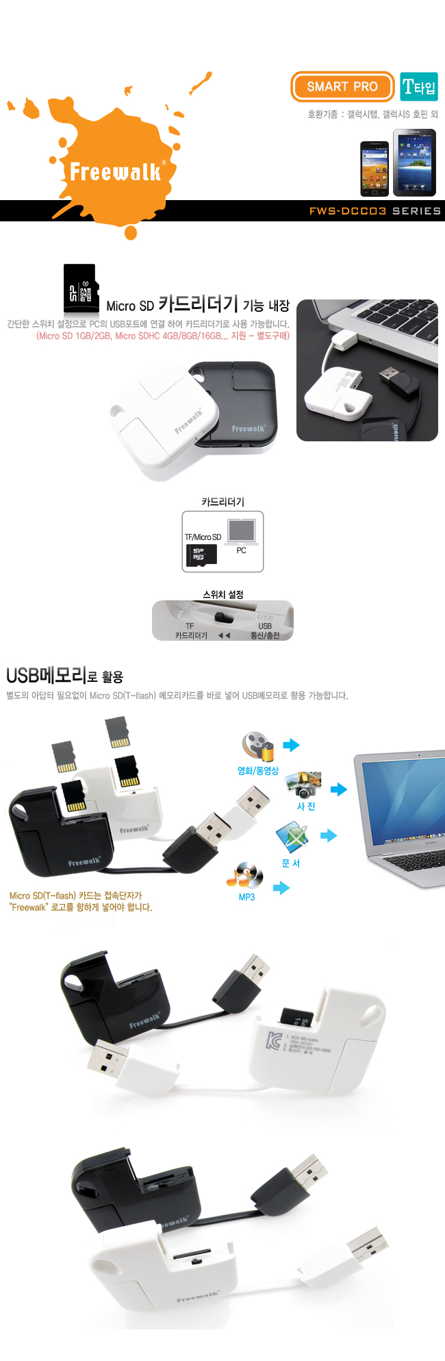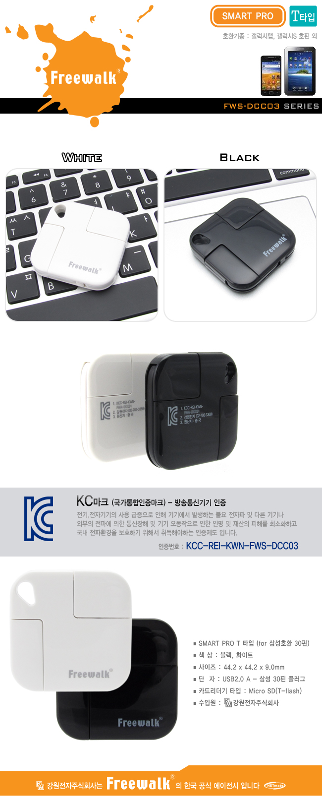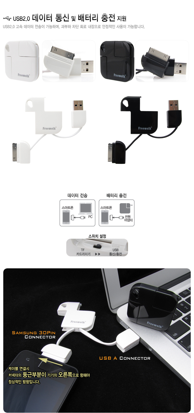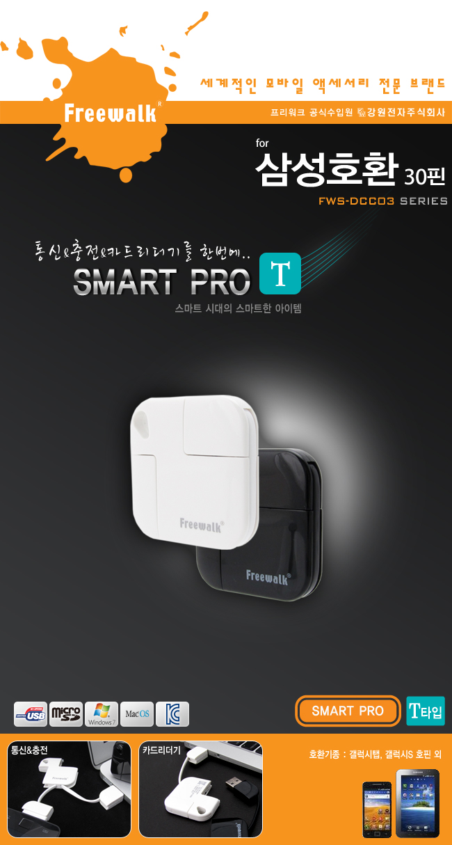 Freewalk FWS-DCC03W 삼성30핀지원 SMART PRO T형(화이트) FWS-DCC03W