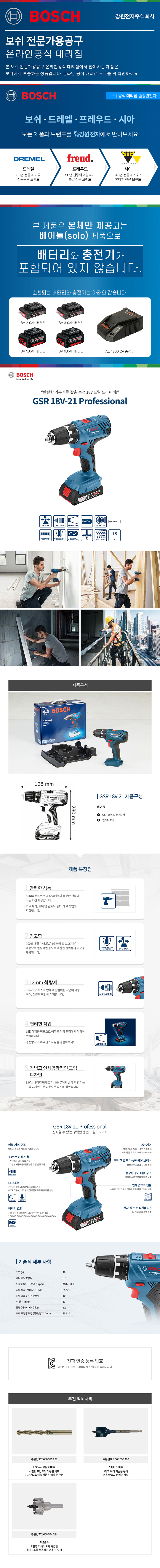 보쉬 GSR 18V-21 충전 드릴 드라이버 본체(베어툴/06019H10B1)