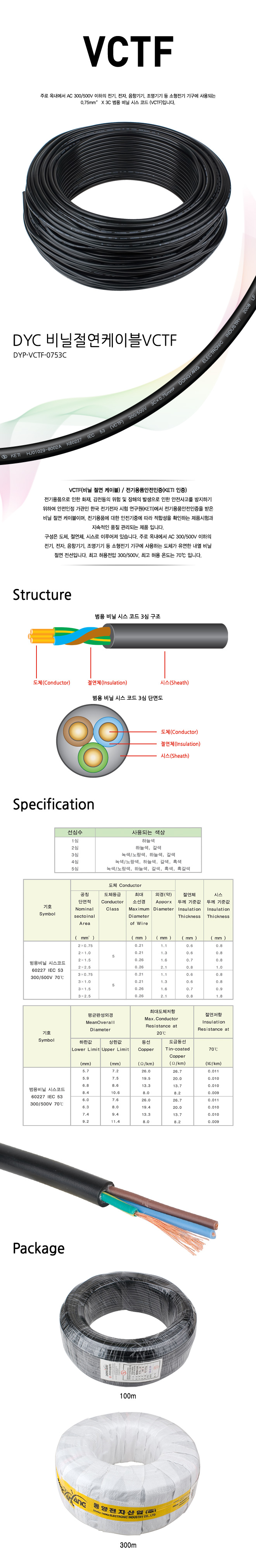 DYP-VCTF-0753C(100) VCTF 0.75mm² X 3C 범용 비닐 시스 코드 100m