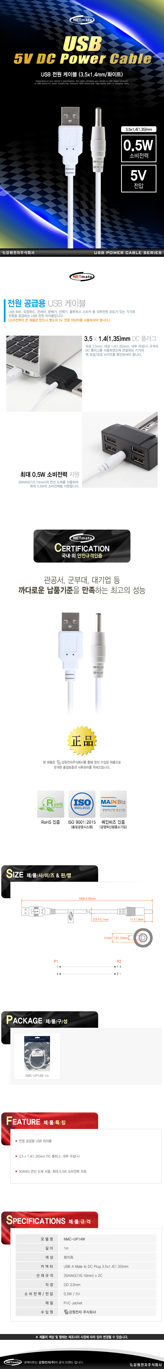 강원전자 넷메이트 USB 전원 케이블 1m (3.5x1.4mm/0.5W/화이트) NMC-UP14W