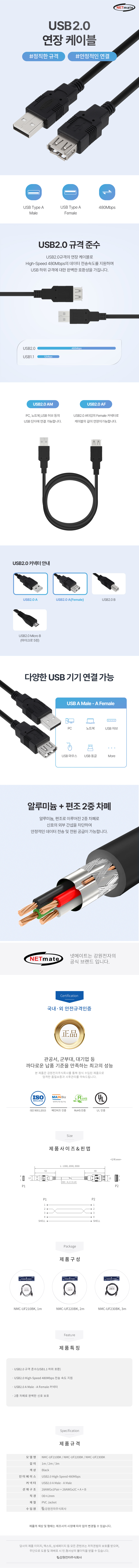 강원전자 넷메이트 USB2.0 연장 AM-AF 케이블 1m (블랙) NMC-UF210BK NMC-UF210BK