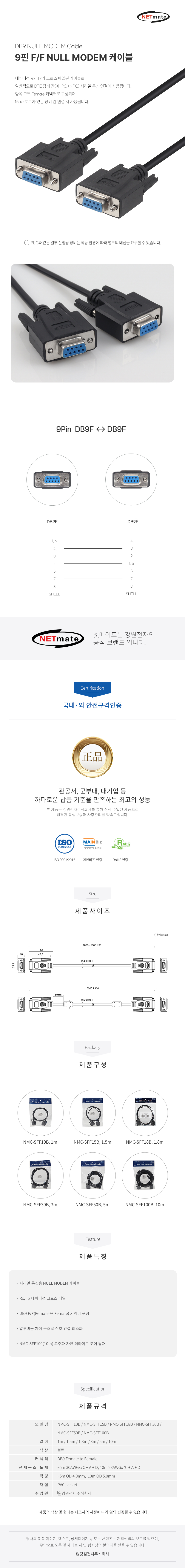 강원전자 넷메이트 9핀 F/F NULL MODEM 케이블 1.8m (블랙) NMC-SFF18B NMC-SFF18B