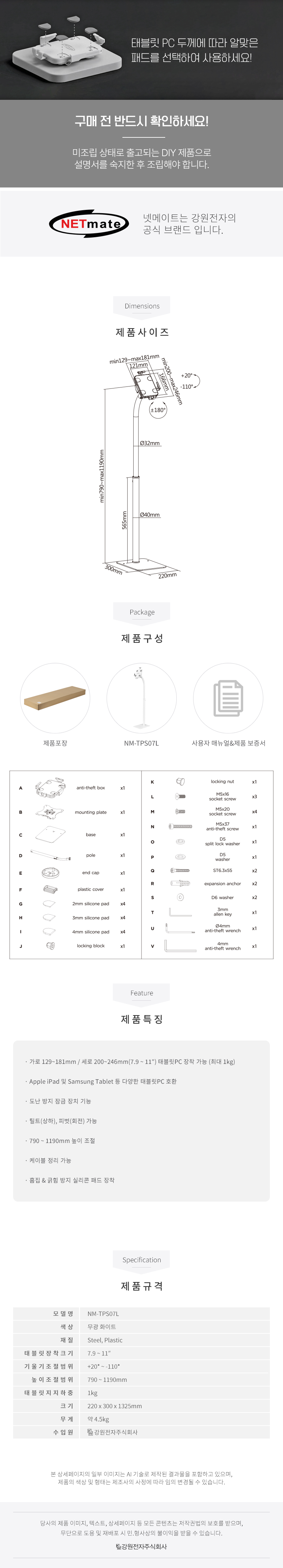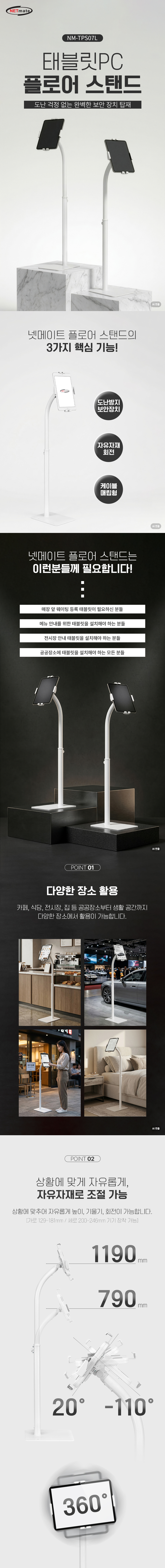 강원전자 넷메이트 태블릿PC 플로어 스탠드, 도난방지 NM-TPS07L