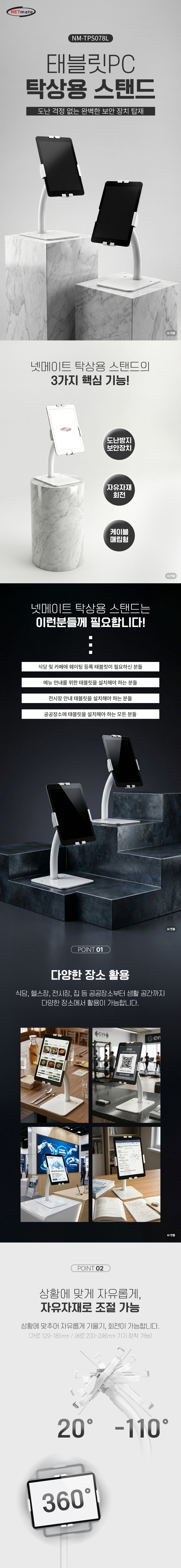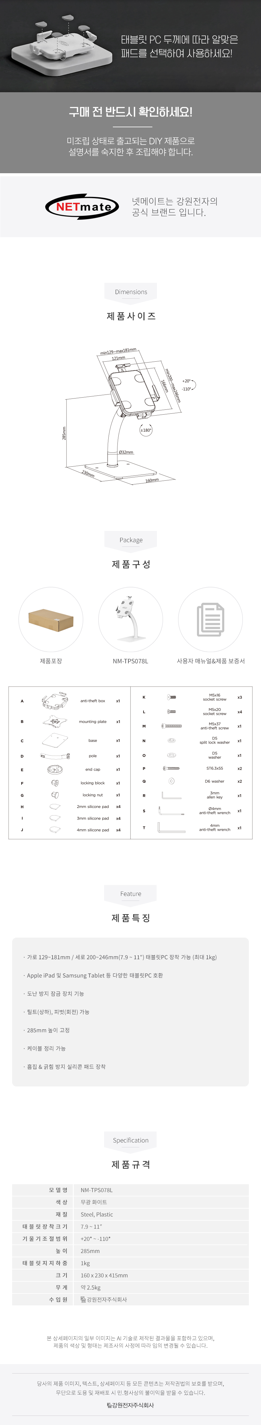강원전자 넷메이트 탁상용 태블릿PC 스탠드, 도난방지 NM-TPS078L NM-TPS078L