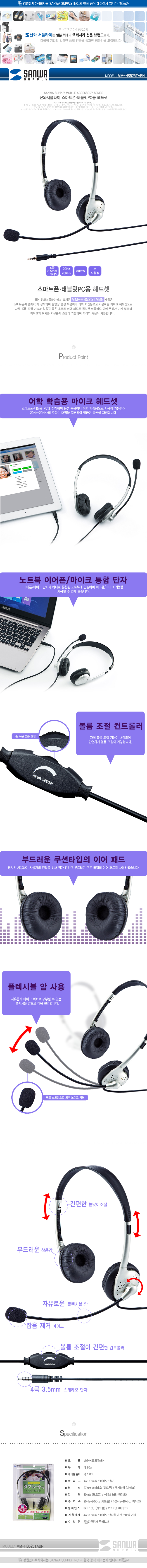 강원전자 산와서플라이 MM-HS525TABN 스마트폰·태블릿PC용 헤드셋