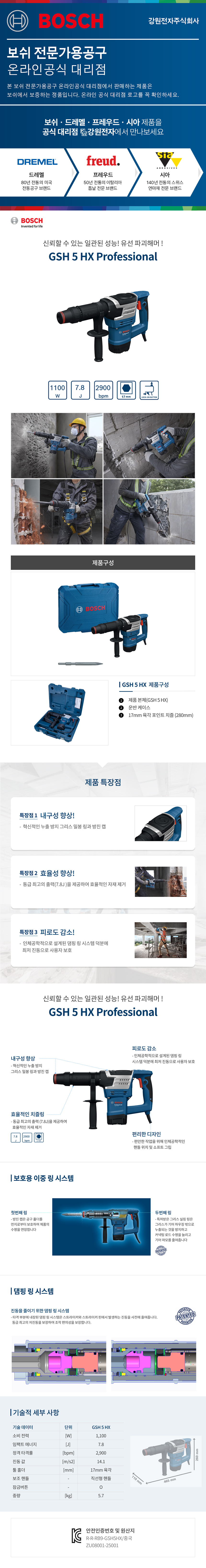 보쉬 GSH 5 HX 1100W 유선 파괴해머 06113388B1