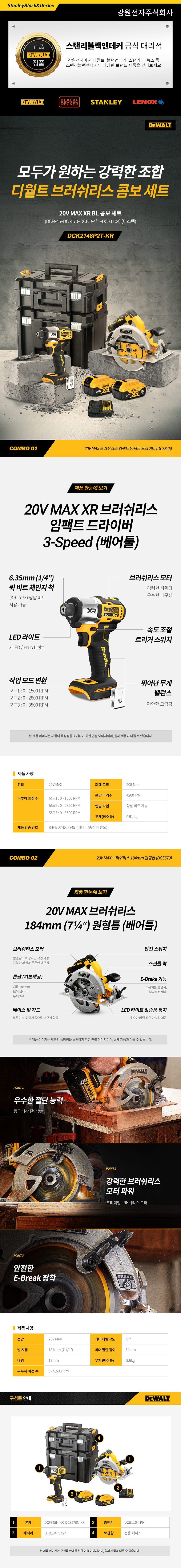 Dewalt, 20V,18V, 충전콤보세트, 임팩트 드라이버, 184mm 원형톱, TSTAK, 티스텍 공구함, DCB184-KR