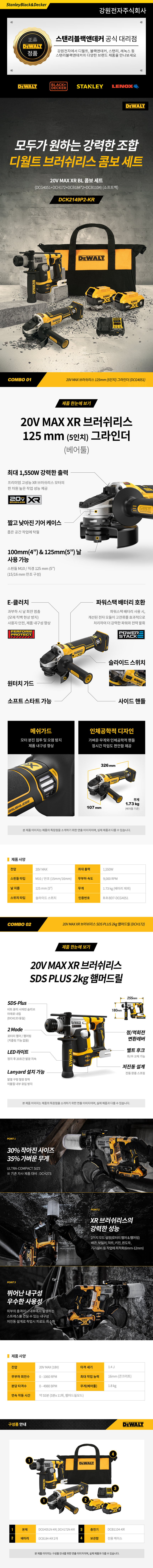 Dewalt, 20V,18V, 충전콤보세트, 125mm 5인치 그라인더, 햄머드릴, 소프트백, DCB184-KR