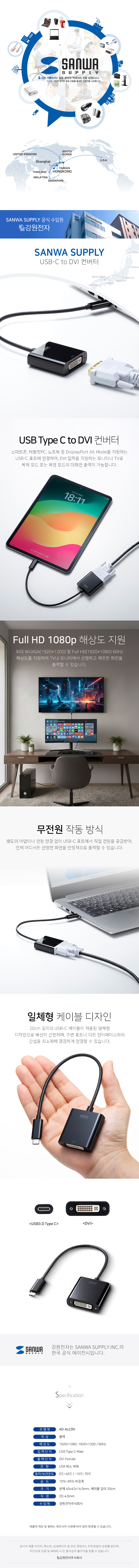 강원전자 산와서플라이 USB Type C to DVI 컨버터 AD-ALCDV