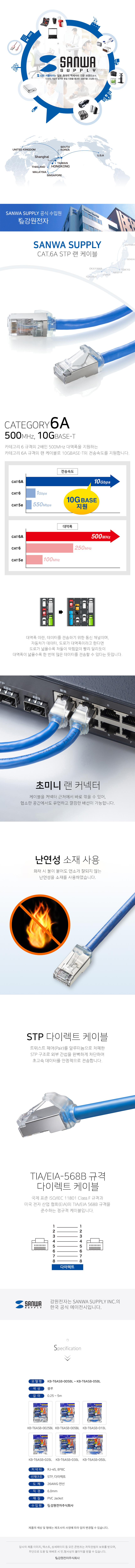 강원전자 산와서플라이 CAT.6A STP 랜 케이블 0.5m (블루) KB-T6ASB-005BL KB-T6ASB-005BL