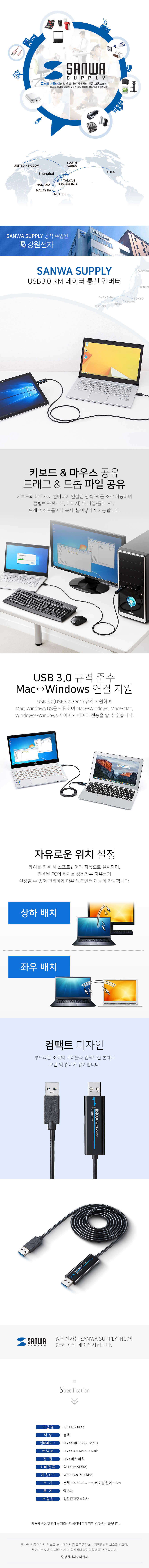 강원전자 산와서플라이 USB3.0 KM 데이터 통신 컨버터(키보드/마우스 공유)