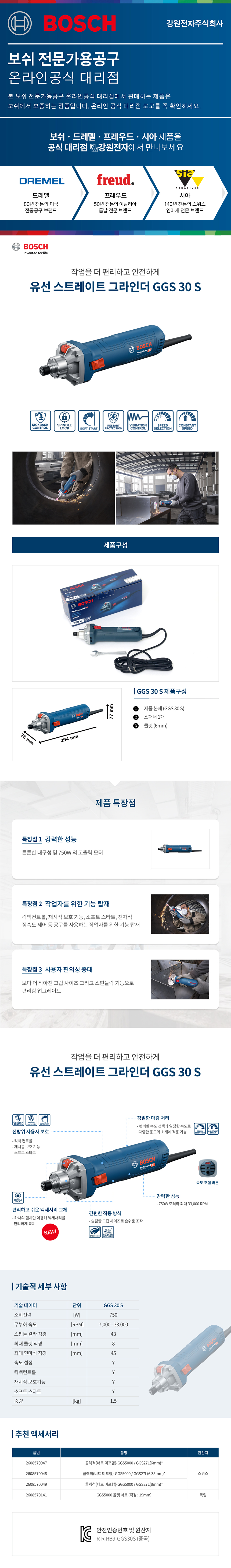 보쉬 GGS 30 S 유선 스트레이트 그라인더 06012B51B0 06012B51B0