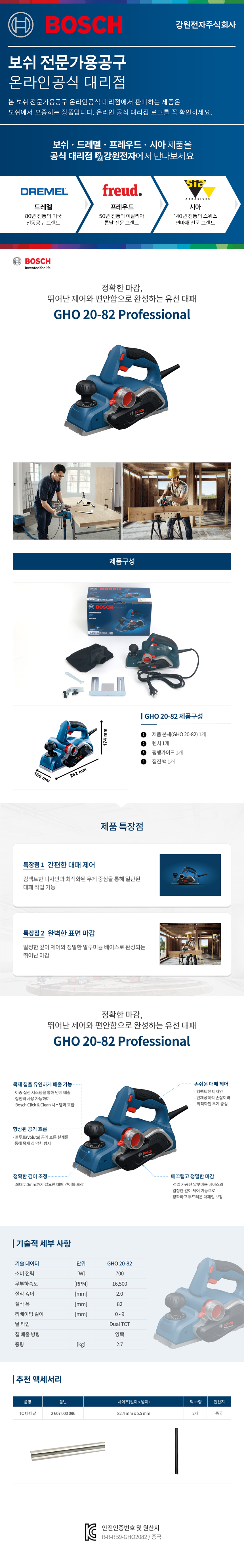 보쉬 GHO 20-82 유선 전기대패 06015A91B0