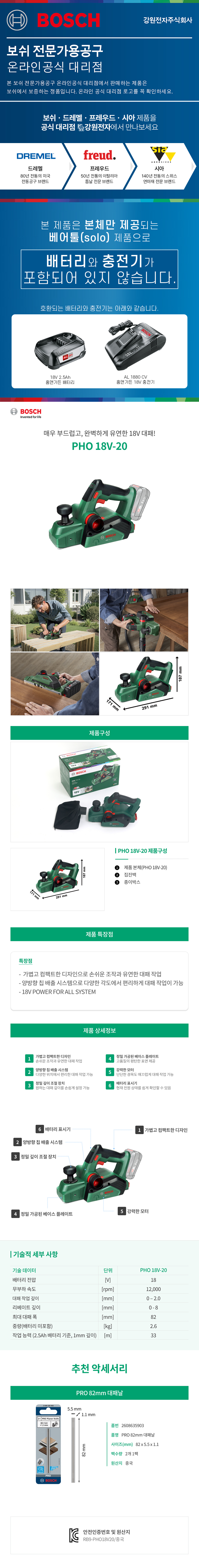 보쉬 PHO 18V-20 충전 대패 본체(베어툴) 06032A4200 06032A4200