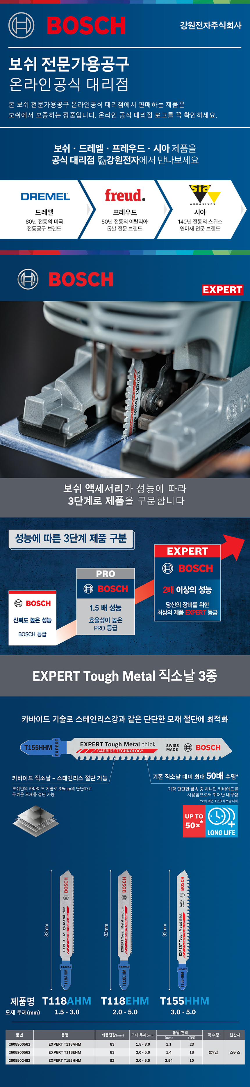 보쉬 EXPERT T 155 HHM 스테인레스용 직소날(3개입) 2608902482