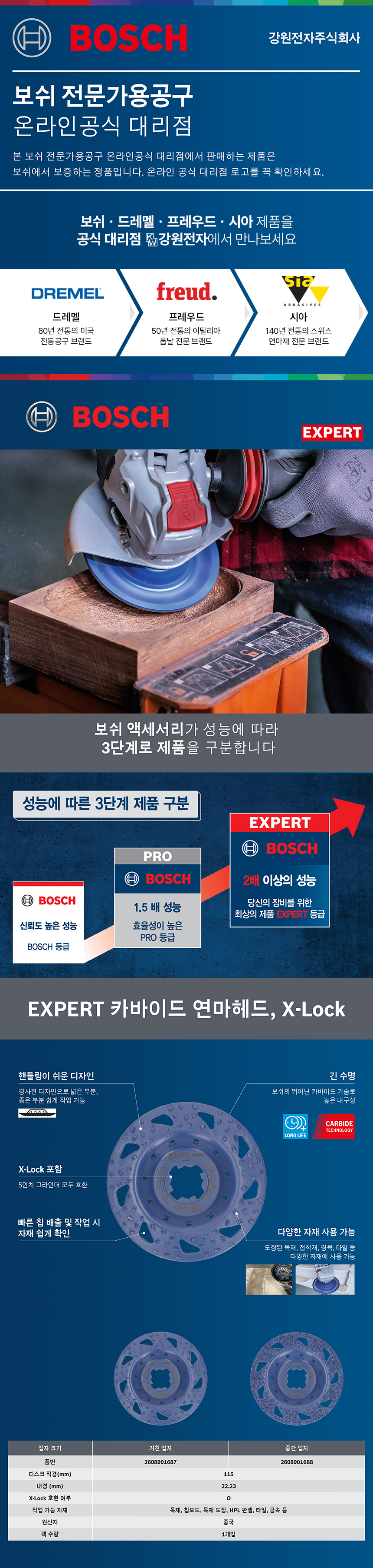 Bosch, Xlock, 그라인더날, 115mm, 4.5인치, 5인치 그라인더 호환, 내경 22.23mm, Carbide, 연마헤드, 연마석