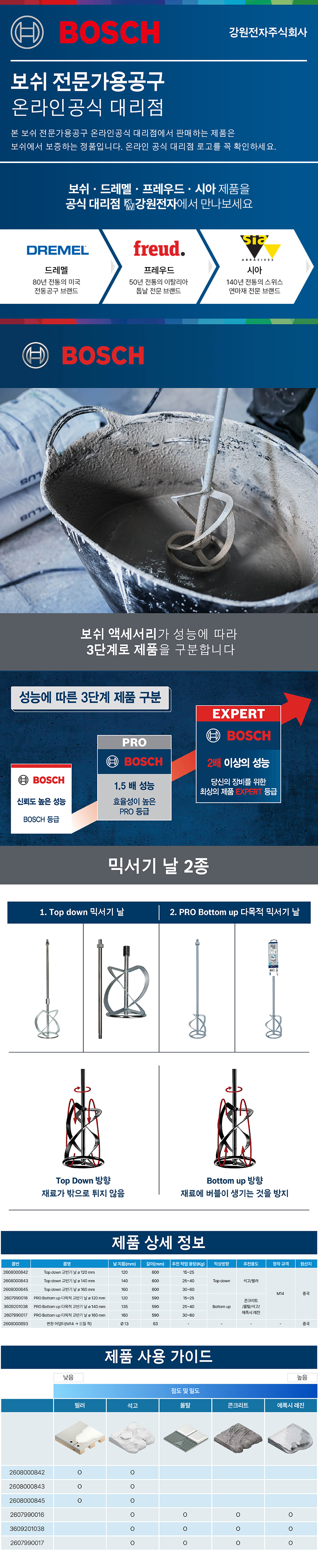 | Bosch, PRO, 교반기날, 믹서바스켓, 콘크리트, 몰탈, 석고, 에폭시 레진, M14, Bottom up |