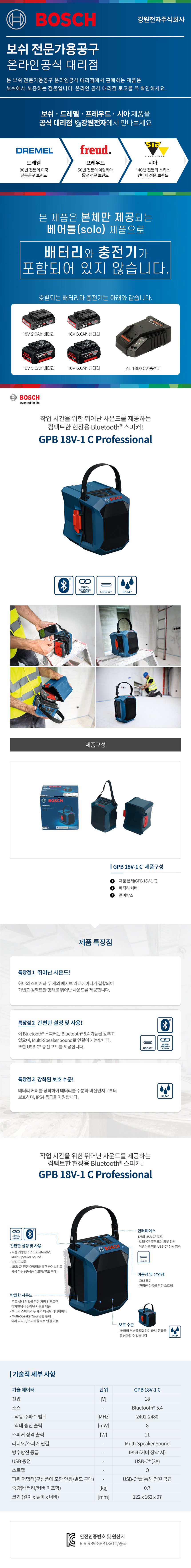 보쉬 GPB 18V-1 C 블루투스 스피커 본체(베어툴) 06014A7001 06014A7001