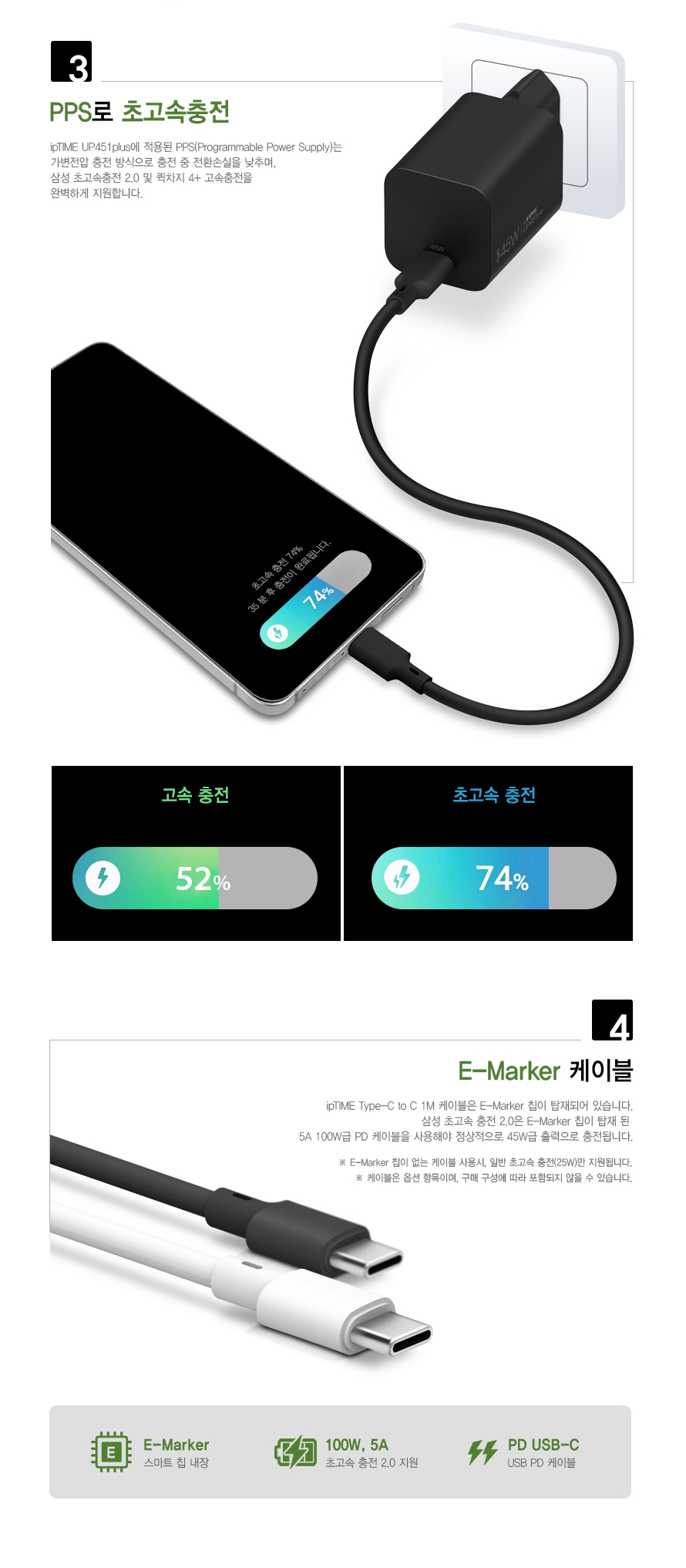ipTIME(아이피타임) USB PD 45W GaN 초고속 충전기(케이블 포함) UP451 PLUS-C BLACK
