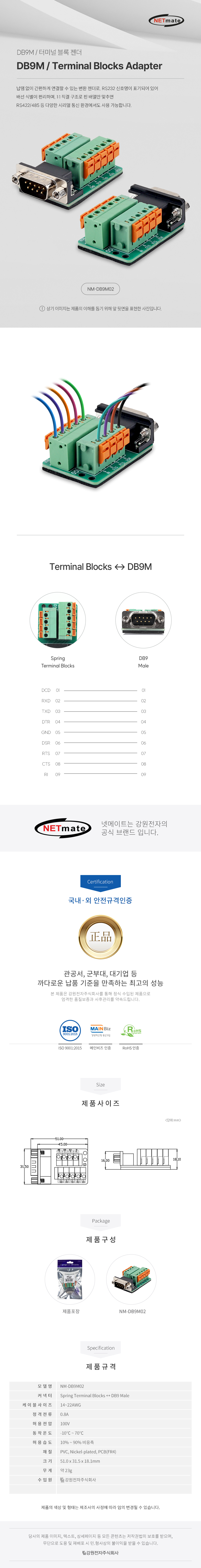 강원전자 넷메이트 DB9M / 9핀 터미널 블록 젠더 NM-DB9M02 NM-DB9M02