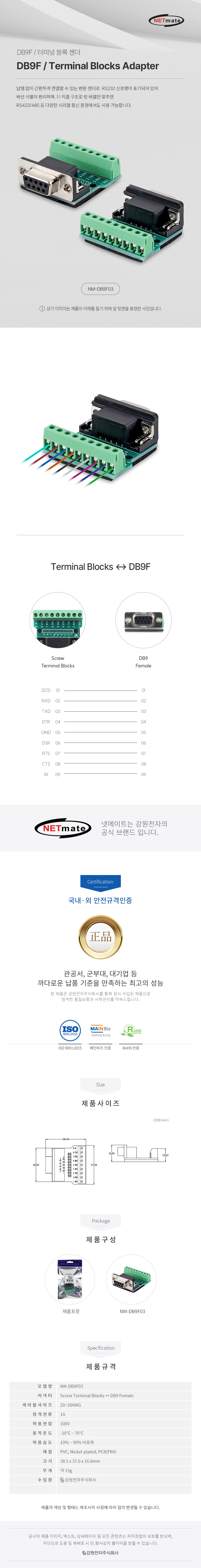 강원전자 넷메이트 DB9F / 9핀 터미널 블록 젠더 NM-DB9F03 NM-DB9F03