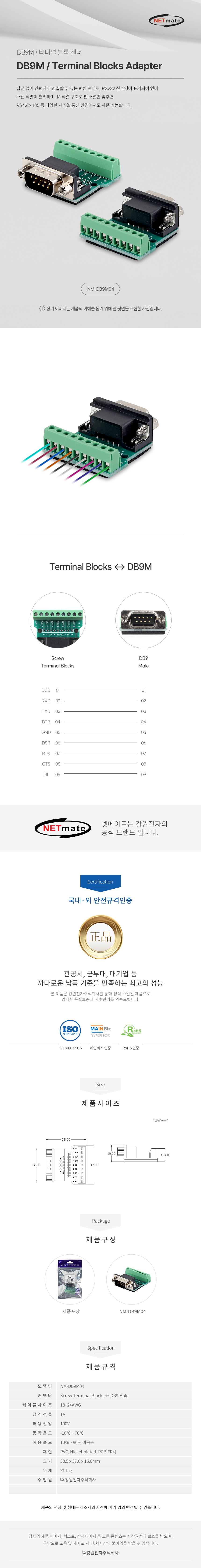 강원전자 넷메이트 DB9M / 9핀 터미널 블록 젠더 NM-DB9M04 NM-DB9M04