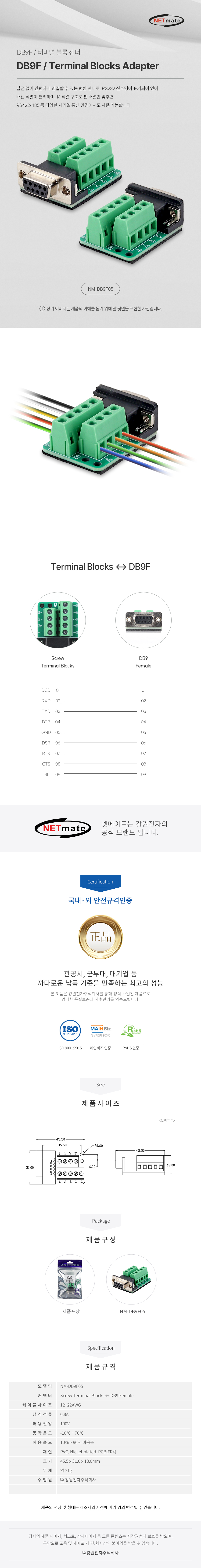 강원전자 넷메이트 DB9F / 9핀 터미널 블록 젠더 NM-DB9F05 NM-DB9F05