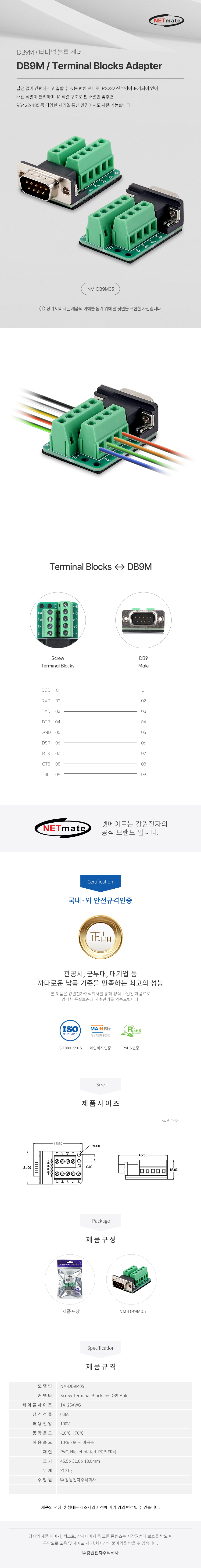강원전자 넷메이트 DB9M / 9핀 터미널 블록 젠더 NM-DB9M05