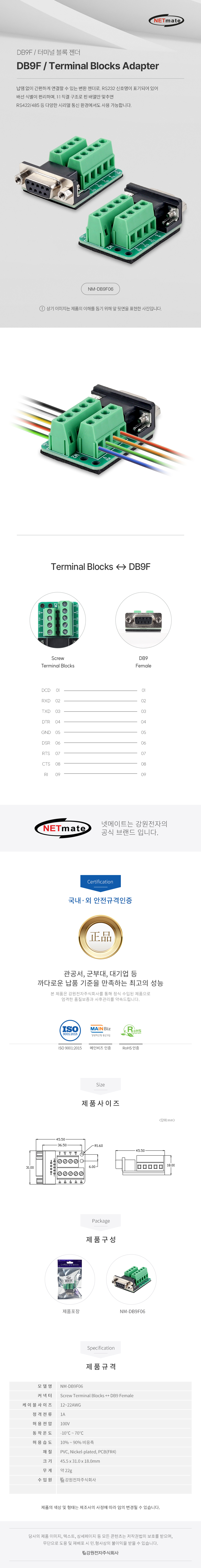 강원전자 넷메이트 DB9F / 9핀 터미널 블록 젠더 NM-DB9F06 NM-DB9F06