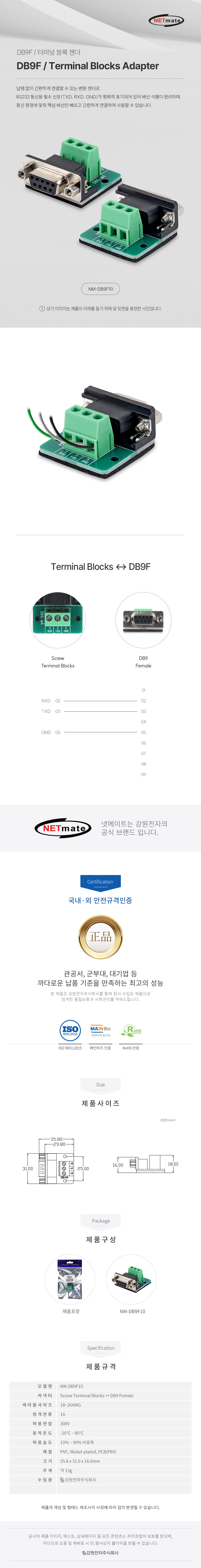 강원전자 넷메이트 DB9F / 3핀 터미널 블록 젠더 NM-DB9F10 NM-DB9F10