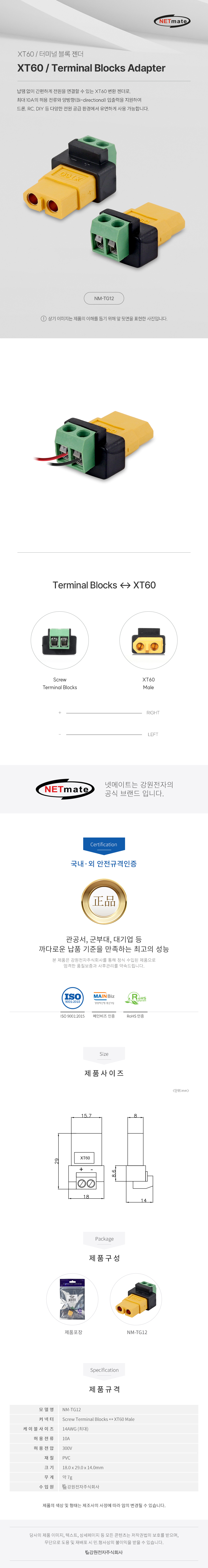 강원전자 넷메이트 XT60 / 2핀 터미널 블록 젠더 NM-TG12 NM-TG12
