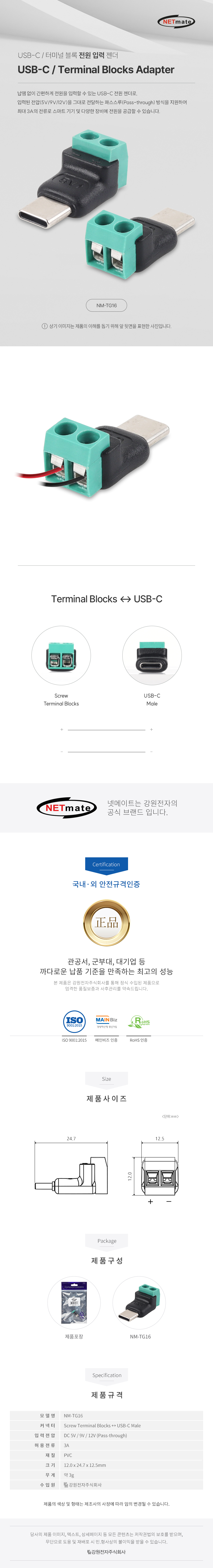강원전자 넷메이트 USB-C / 2핀 터미널 블록 전원 입력 젠더 NM-TG16 NM-TG16