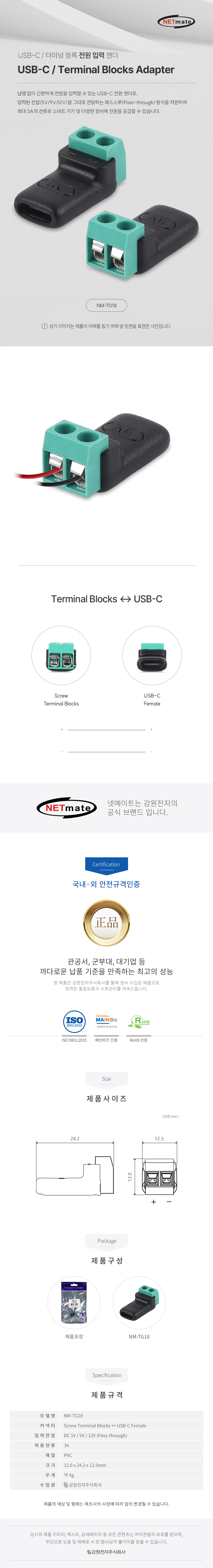 강원전자 넷메이트 USB-C / 2핀 터미널 블록 전원 입력 젠더 NM-TG18 NM-TG18