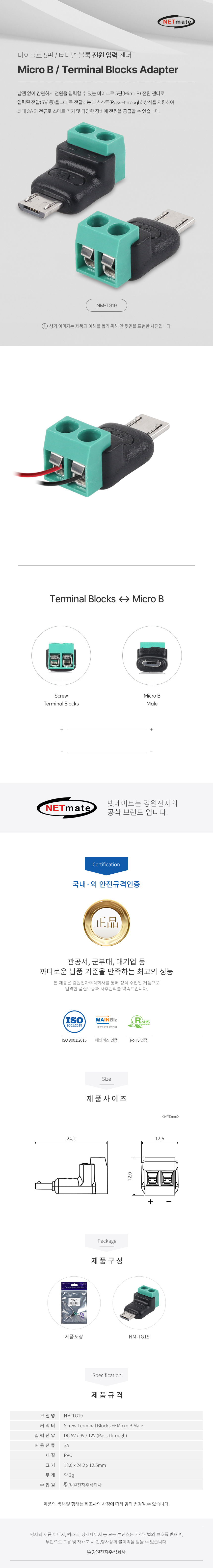 강원전자 넷메이트 마이크로 5핀 / 2핀 터미널 블록 전원 입력 젠더 NM-TG19 NM-TG19