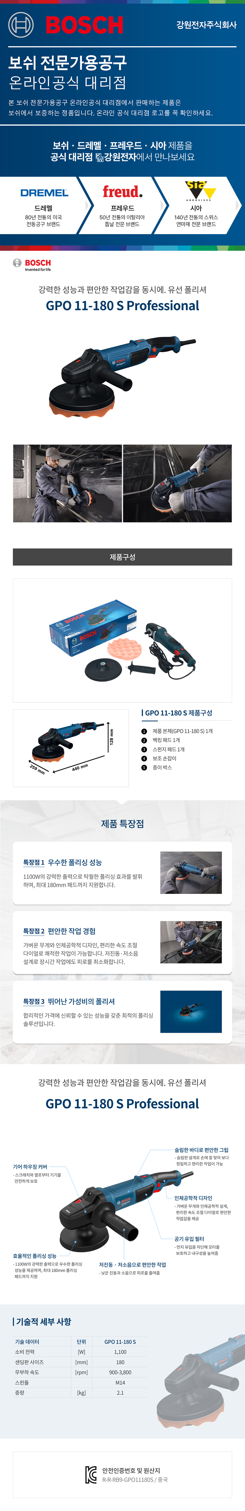 보쉬 GPO 11-180 S 유선 폴리셔 06013A23B0 06013A23B0