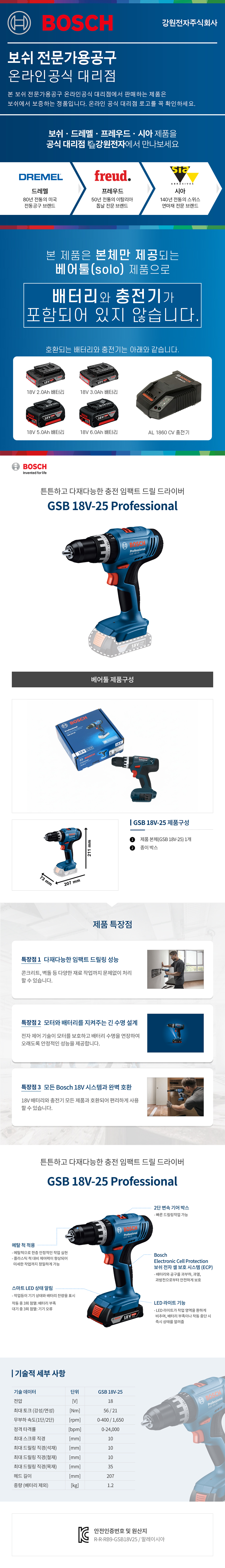 보쉬 GSB 18V-25 충전 임팩트 드릴 드라이버 본체(베어툴) 06019K93B1 06019K93B2