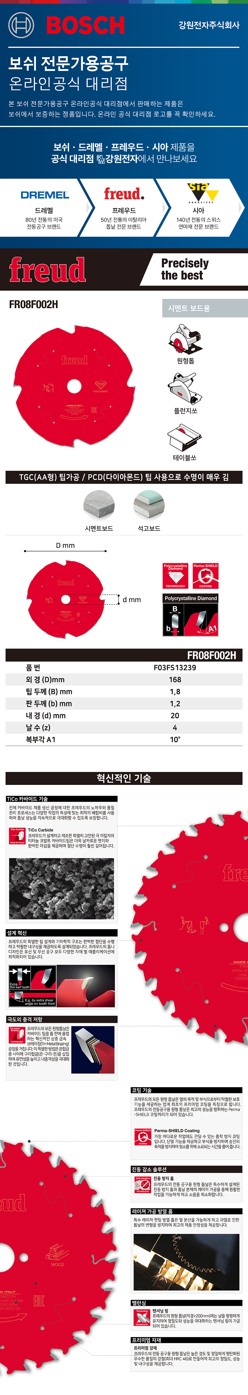 프레우드 FR08F002H 168mm T4 시멘트보드용 원형톱날(1개입) F03FS13239