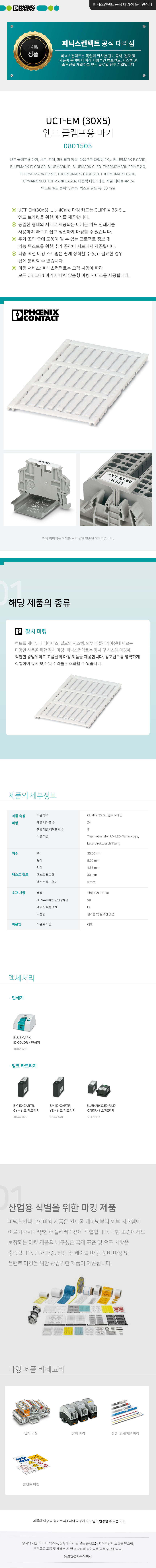 피닉스컨택트 UCT-EM (30X5) 엔드 클램프용 마커 0801505 0801505