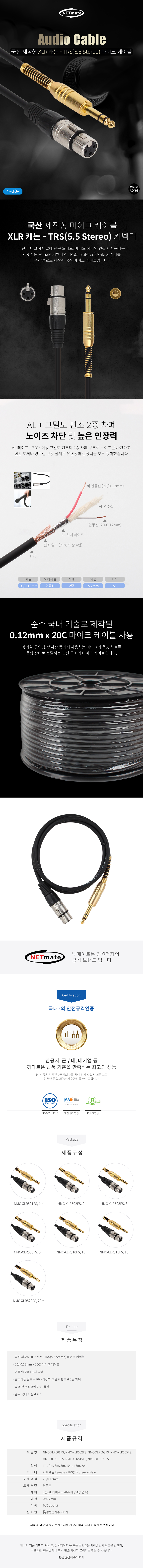 국산 제작형 XLR 캐논 - TS(5.5 Stereo) 케이블 / 2심(0.12mm x 20C) 마이크 케이블 사용