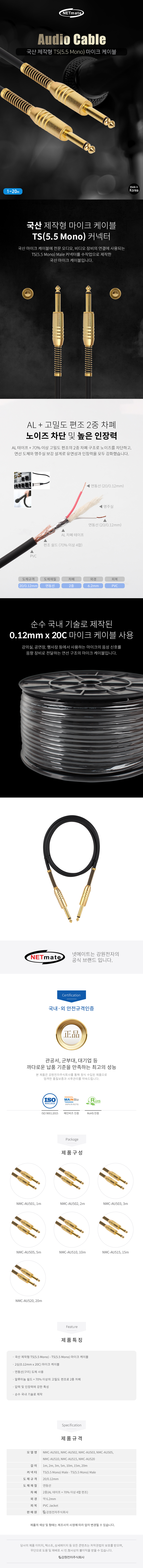 강원전자 넷메이트 TS(5.5 Mono) 마이크 케이블 15m NMC-AU515 NMC-AU515