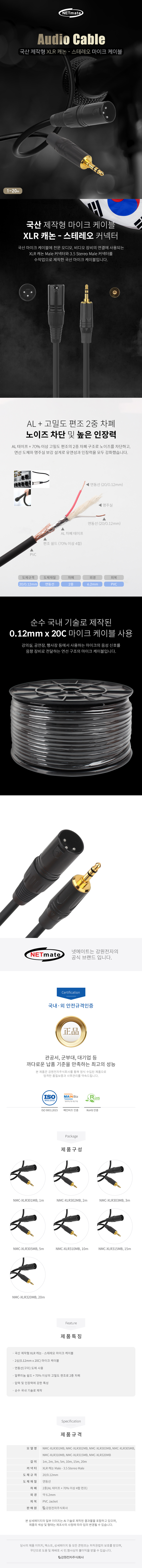강원전자 넷메이트 XLR 캐논(M)-스테레오 마이크 케이블 5m NMC-XLR305MB NMC-XLR305MB
