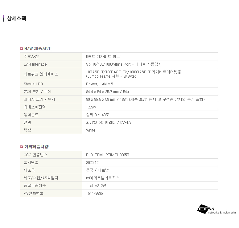 ipTIME(아이피타임) 5포트 기가비트 스위칭 허브 H8005R H8005R