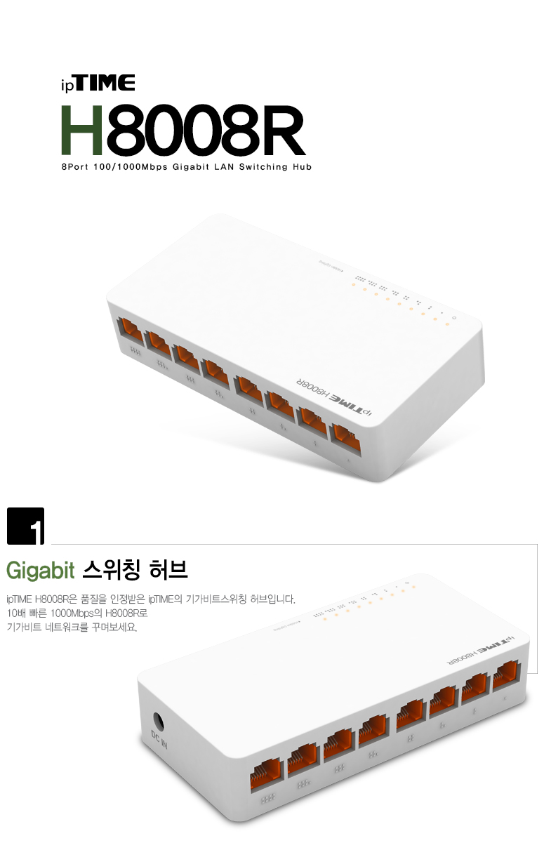 ipTIME(아이피타임) 8포트 기가비트 스위칭 허브 H8008R