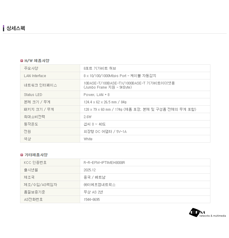 ipTIME(아이피타임) 8포트 기가비트 스위칭 허브 H8008R H8008R