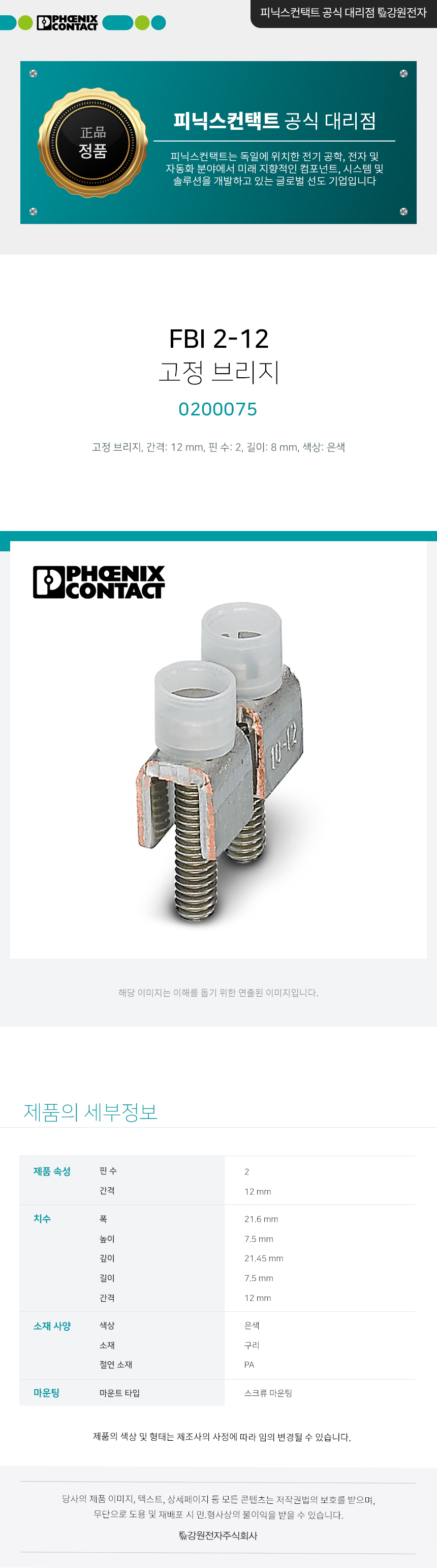 피닉스컨택트 FBI 2-12 고정 브리지 0200075