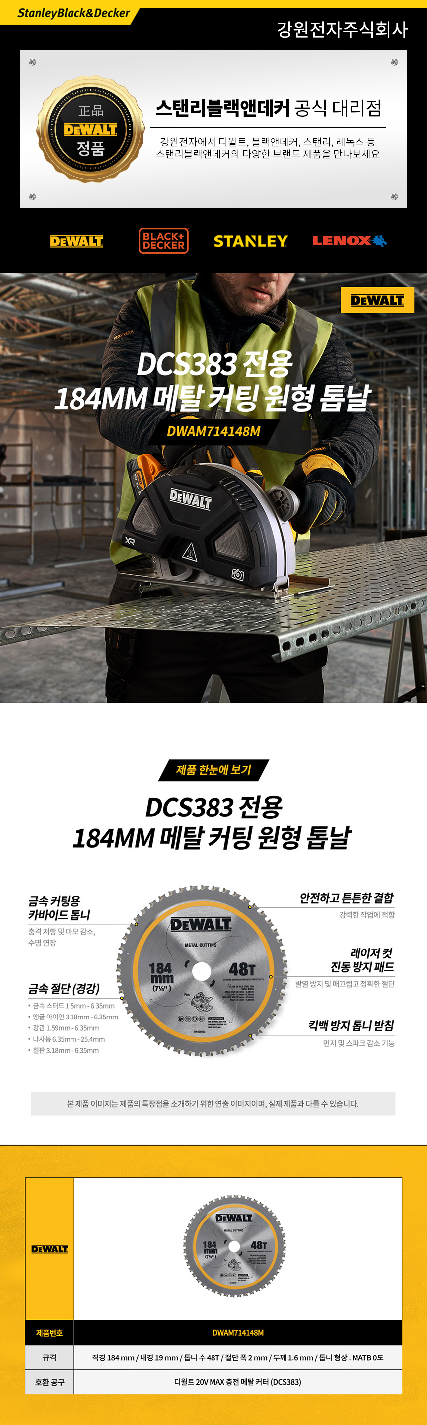 디월트 DCS383용 184mm 금속용 원형톱날 DWAM714148M DWAM714148M