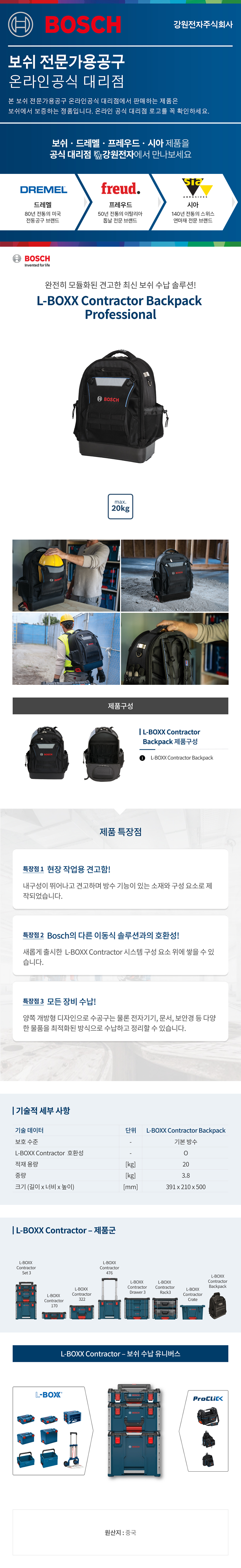보쉬 L-BOXX Contractor Backpack 다용도 백팩 1600A037E5