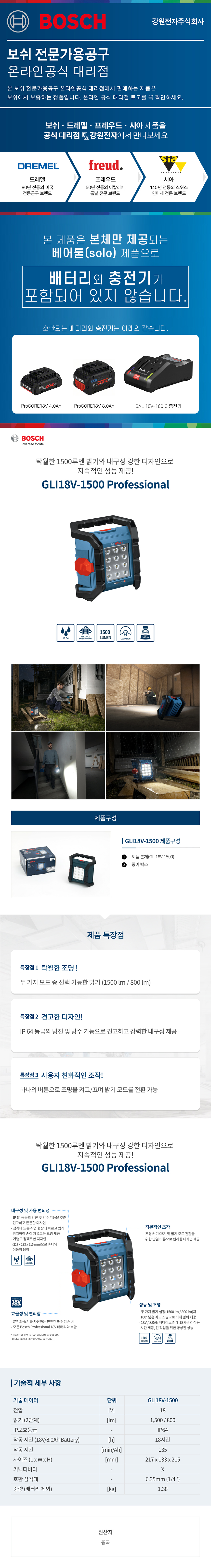 Bosch, 작업등, LED등, LED작업등, 랜턴, LED랜턴, 충전LED랜턴, 작업램프, 1500루멘, 조명등
