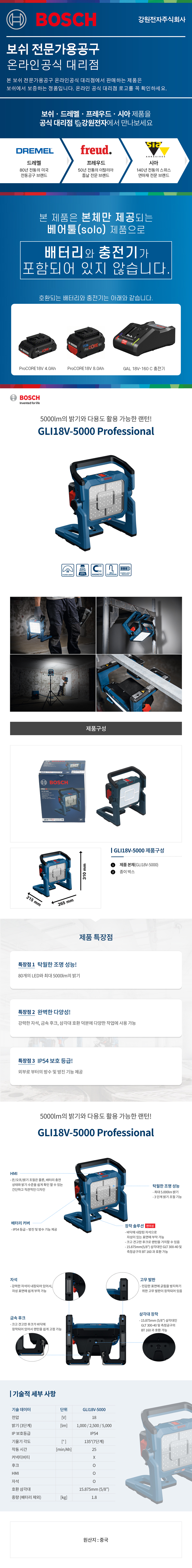 보쉬 GLI 18V-5000 충전 LED 작업등 본체(베어툴) 06019P5100 06019P5100